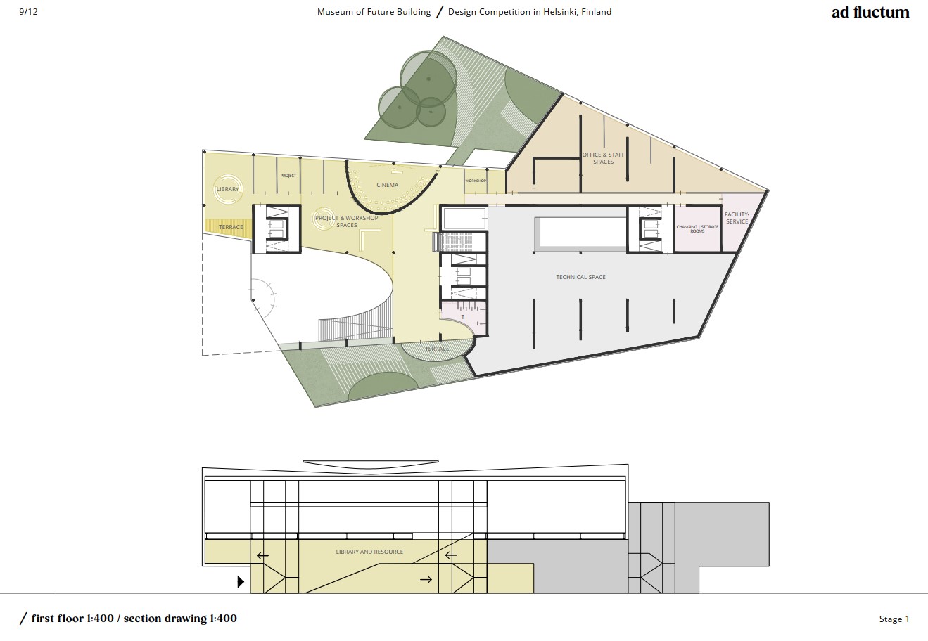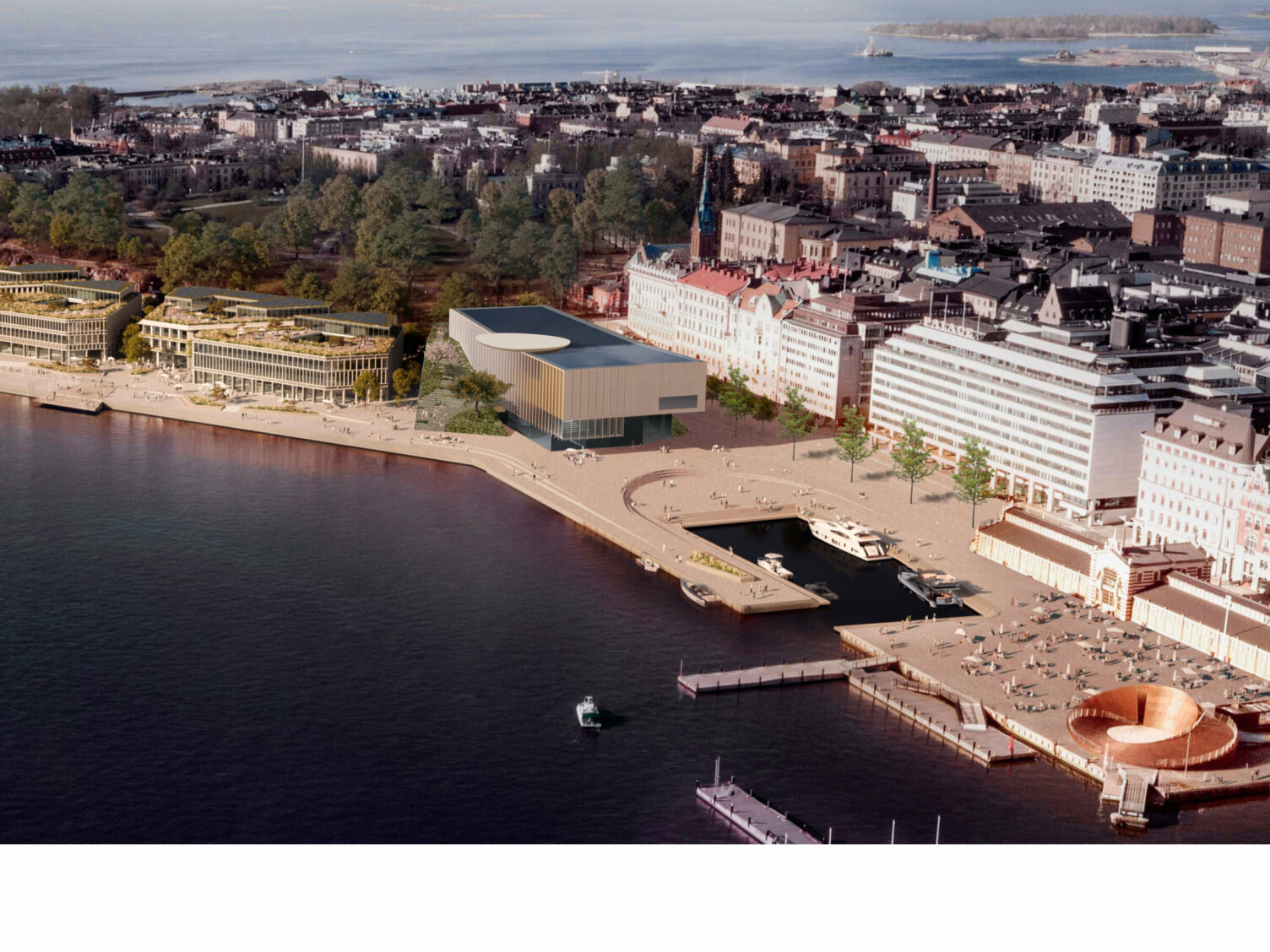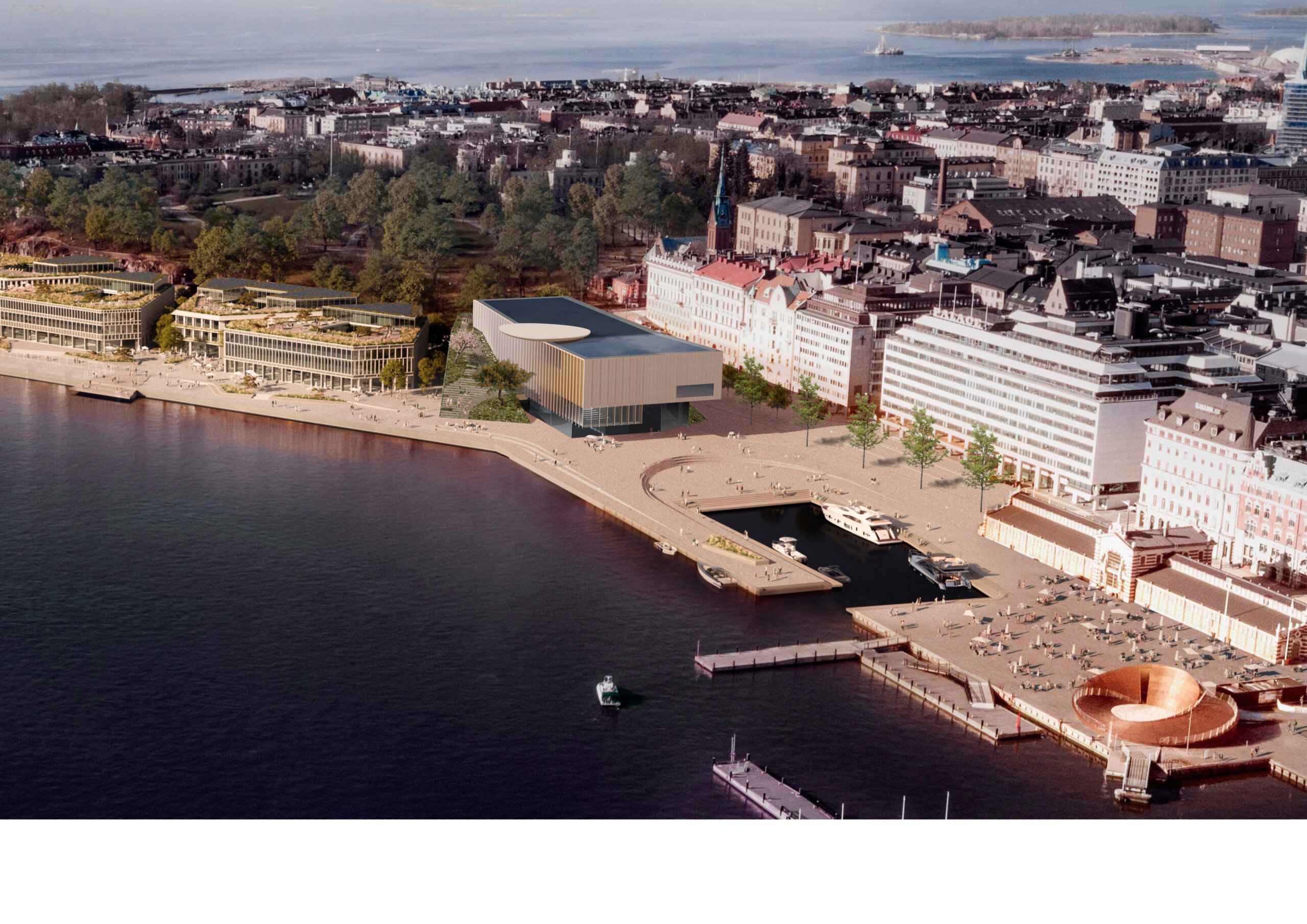 The new museum acts as an urban linchpin between Makasiiniranta and the central port area, extending the greenery from Tähtitorninvuori through its publicly accessible ramps to the northern square.