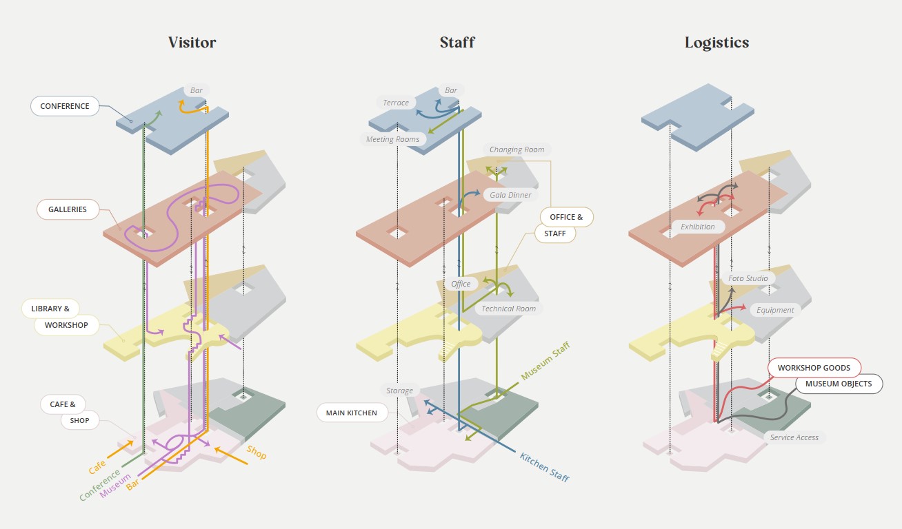 The use of natural materials improves the carbon footprint and forms a neutral framework for the museum‘s diverse content.
