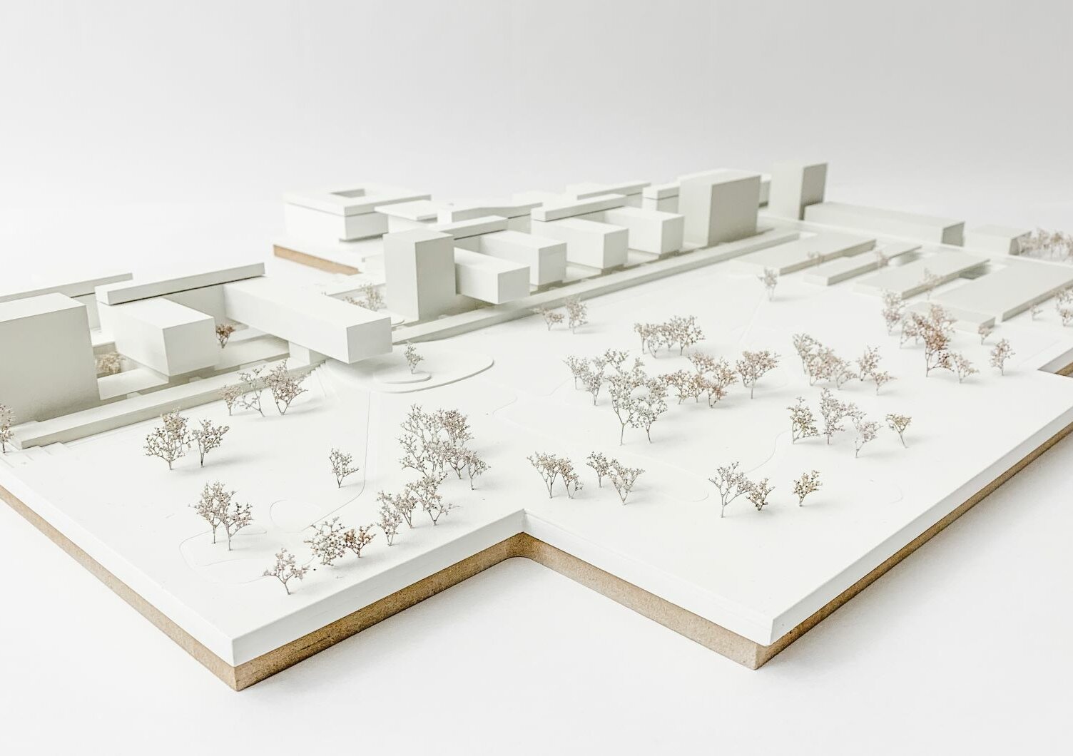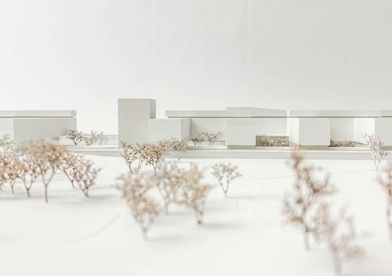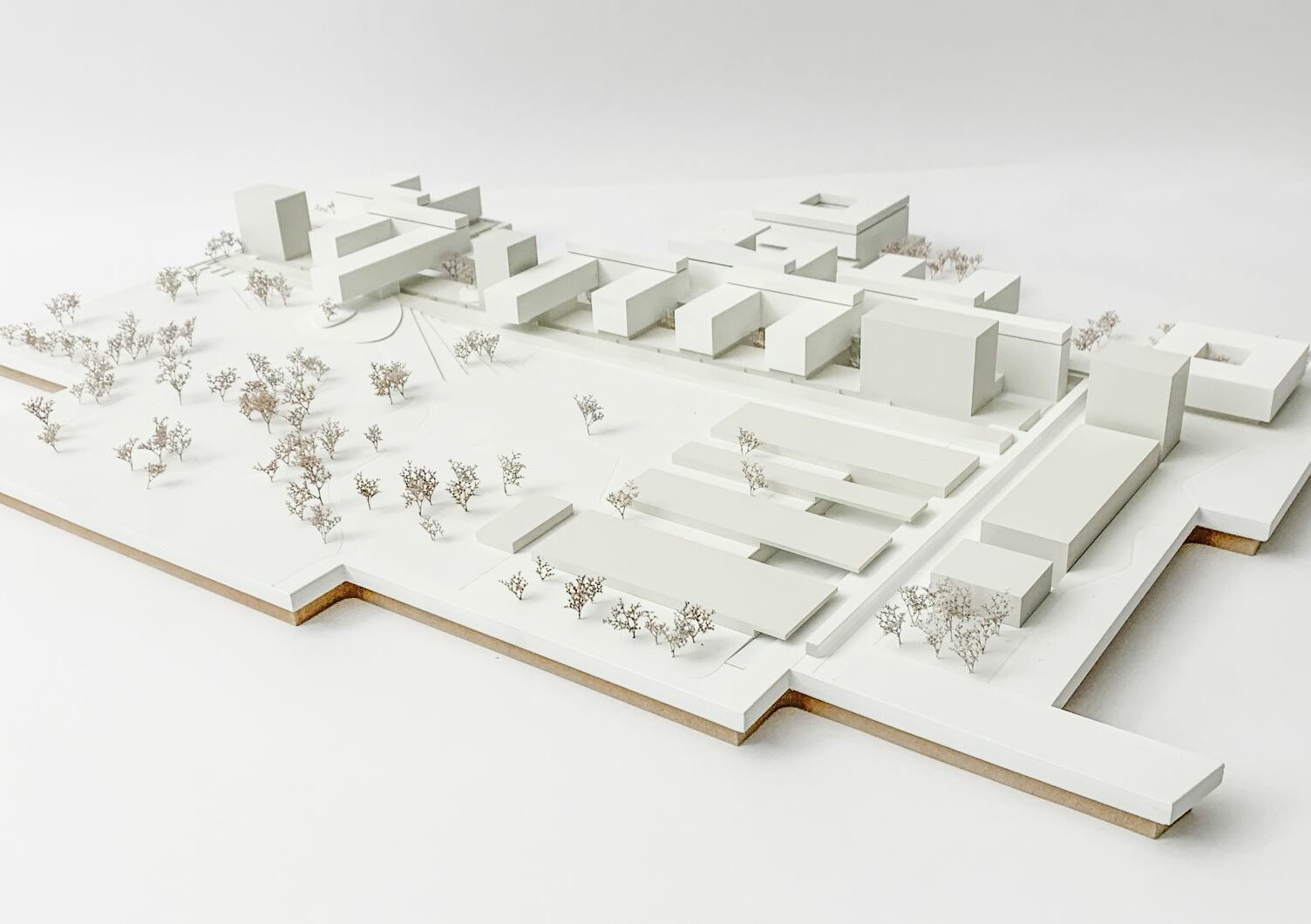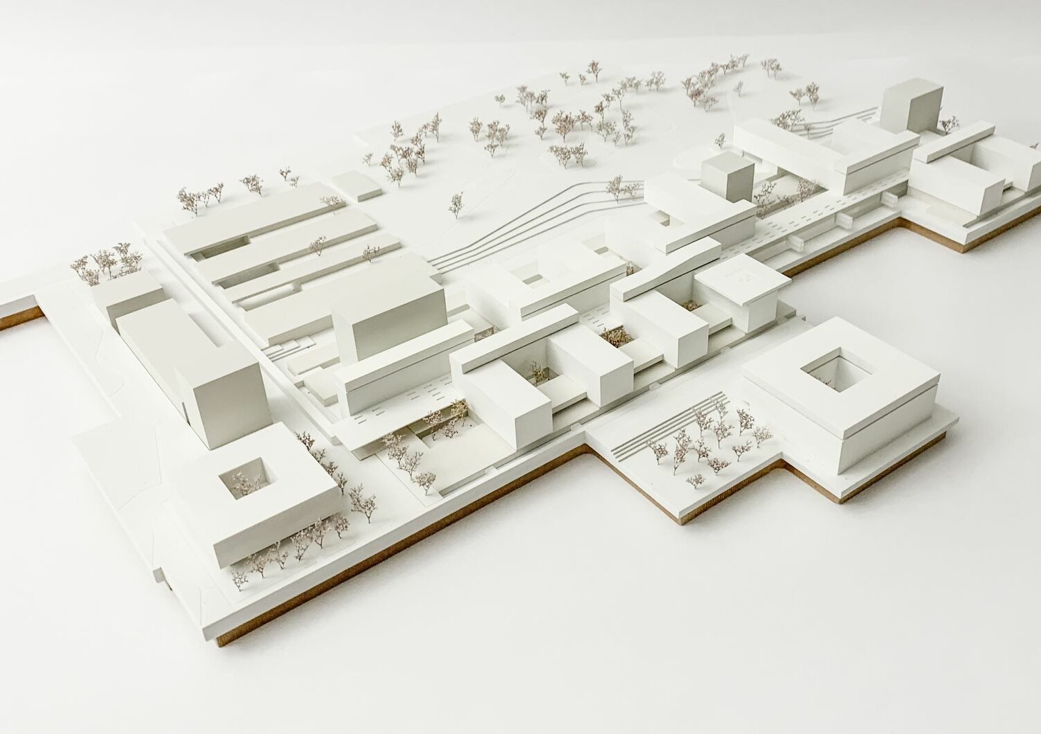 Durch die vorgeschlagenen Gebäudehöhen entfällt die Hochhausproblematik mit den damit verbundenen Mehrkosten für Bereiche mit Patientinnen und Patienten. Eine Ausnahme dieser Höhenbegrenzung wird in einer baulichen Zeile sichtbar, die durch vier Hochpunkte charakterisiert ist. Diese sind mit der Grundstruktur verwoben und betonen ausgewiesene städtebauliche Situationen. In diesen sind Funktionen verortet, die nicht dem unmittelbaren Krankenhausbetrieb zugeordnet sind. Die Flächen für Wirtschaft, Logistik und Energieversorgung werden schrittweise erneuert und wie bisher um den bestehenden Ladehof angesiedelt. Die Gestaltung erfolgt in Form einer Verschränkung von Parklandschaft und Bauwerk.